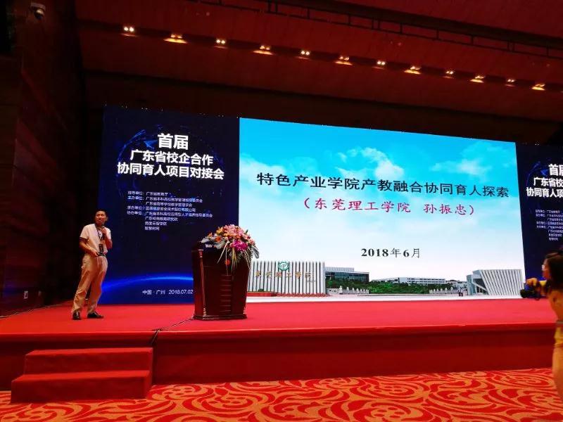 “首届广东省校企合作协同育人项目对接会”于2018年7月1日-2日在广州白云国际会议中心隆重举行。会议由广东省教育厅指导,广东省高等学校教学管理学会、广东省本科高校教学管理指导委员会主办。来自教育部高等教育司及广东省教育厅领导、全省本科高校分管教学相关领导、以及企业代表等500余人参加了此次项目对接会。会议旨在搭建校企交流合作平台,引导和支持校企联动,推进产教融合、人才培养改革,促进产教供需双向对接。