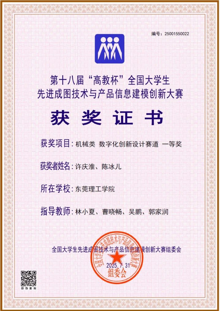 7月28-31日,在全国总决赛中,共有来自全国1001所院校的15500名学生参与比赛,1001所学校中,985院校27所,211院校73所,双一流院校84所;15500选手在主赛场约3990人,各省分赛场约11510人。大赛分成图赛道与开放赛道,成图赛道竞赛项目主要为计算机建模+计算机绘制工程图,经过激烈角逐,我校学生最终获得了团体三等奖1项,其中3308维多利亚线路检测中心学生获得了成图赛道个人二等奖1项,开放赛道一等奖1项和三等奖1项。