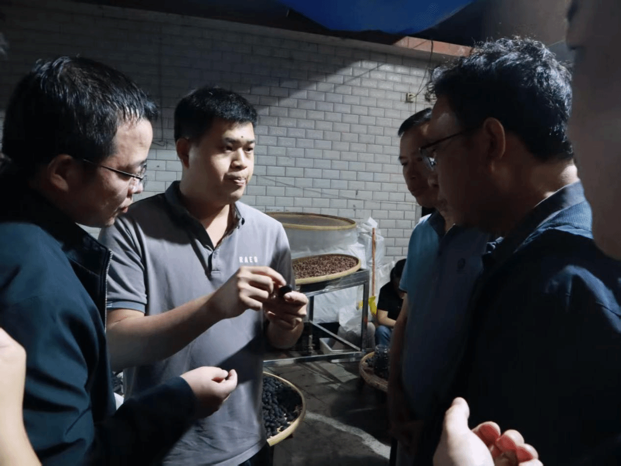 在船埔镇吉告村期间,郭建文一行前往普宁市杨家农业发展有限公司,回访了解“科技小院”交付的第一期茶叶智能化设备使用情况,进一步调研第二期项目需求,与企业负责人进行了细致的探讨和技术交流,为后续精准施策奠定了坚实基础。