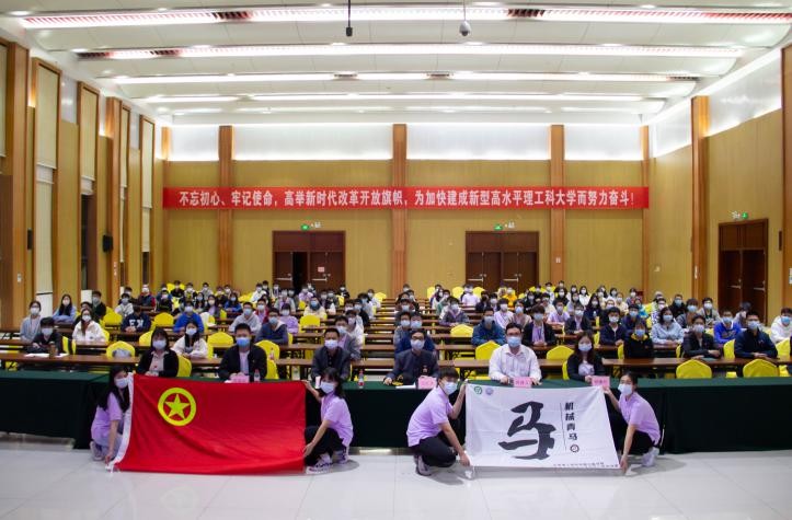 原学校党委副书记、“光荣在党50年”纪念章获得者王江水为机械青马班宣讲党的十九届六中全会精神