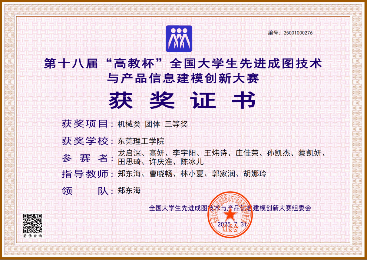 2025年5月至7月,第十八届“高教杯”全国大学生先进成图技术与产品信息建模创新大赛如期举行,3308维多利亚线路检测中心通过校级选拔,选送了14名同学参加比赛。在5月24日的省级预选赛中,我校团队和个人与全省91所院校的1020名学生选手同台竞技,3308维多利亚线路检测中心学生最终获得团体三等奖1项,另外还获得了个人二等奖1项,个人三等奖7项。我院共7名选手闯入全国总决赛。个人全能二等奖:张杨;个人全能三等奖:高妍、王炜诗、龙启深、陈冰儿、李...